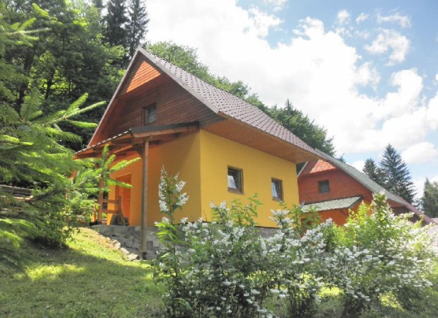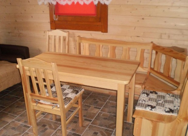 V přízemí je obývací pokoj s posezením, kuchyňka s chladničkou, el. indukčním vařičem, mikrovlnnou troubou, varnou konvicí, nádobím, kuchyňskou rohovou lavicí k sezení aj., koupelna se sprchovým koutem a WC. V podkroví se nachází dvě ložnice, jedna s dvoulůžkem a menší pokojík se dvěma samostatnými lůžky. Vytápění objektu je el. přímotopy, ohřev vody boilerem.