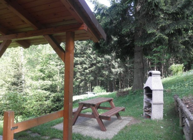Každá chata má zastřešenou verandu a terasu s posezením a venkovním krbem. K dispozici je rovněž venkovní ohniště, pískoviště a travnaté hřiště se sítí na míčové hry. Parkování v objektu zdarma. Všechny chaty jsou situovány v mírně kopcovitém terénu.