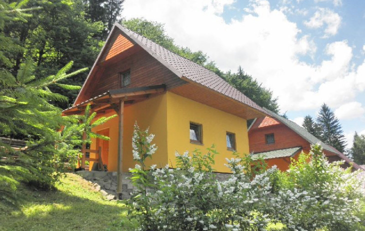 V přízemí je obývací pokoj s posezením, kuchyňka s chladničkou, el. indukčním vařičem, mikrovlnnou troubou, varnou konvicí, nádobím, kuchyňskou rohovou lavicí k sezení aj., koupelna se sprchovým koutem a WC. V podkroví se nachází dvě ložnice, jedna s dvoulůžkem a menší pokojík se dvěma samostatnými lůžky. Vytápění objektu je el. přímotopy, ohřev vody boilerem.